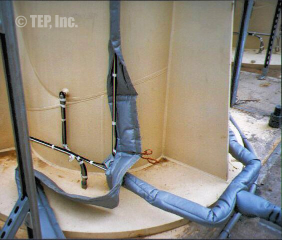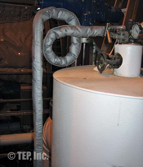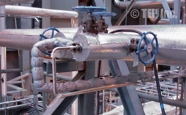 Tube-Wrap was developed as a “personnel protection” application for one-half inch stainless steel tubing. It is a major savings over the conventional method of wrapping textile tape and painting with mastic on small-diameter tubing. Contractors have elected to utilize Tube-Wrap for electrical traced tubing applications at their discretion. TEP, Inc. does not guarantee this application being we have no control in the tracing design or the proper installation in situations subject to freeze protection. The standard jacket material used on Tube-Wrap is a silicone coated fiberglass cloth rated to 450° F.